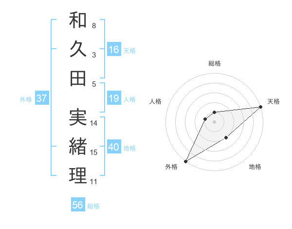 和久田 実緒理さんの天格は16画の5点!
