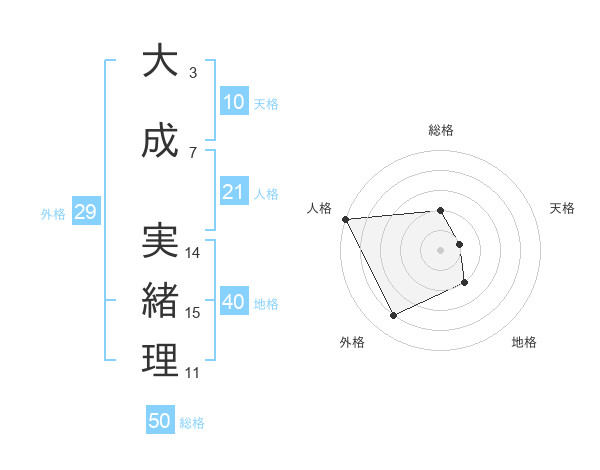 大成 実緒理さんを姓名の画数から五運を鑑定
