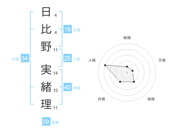 日比野 実緒理さんの天格は19画の1点!