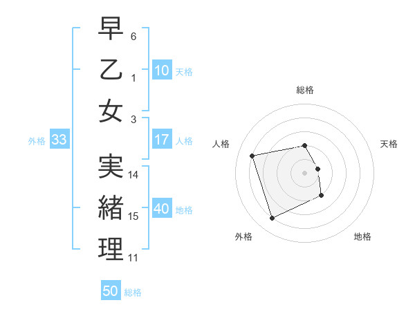 早乙女 実緒理さんの総格は50画の2点!