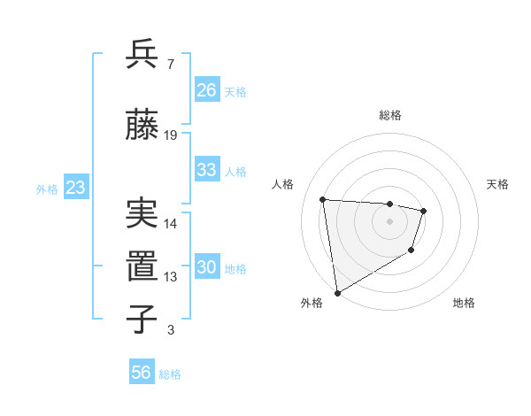 兵藤 実置子さんを姓名の画数から五運を鑑定