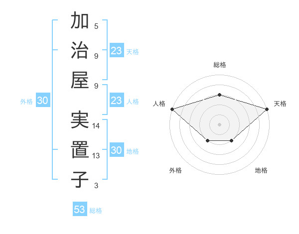 加治屋 実置子さんを姓名の画数から五運を鑑定