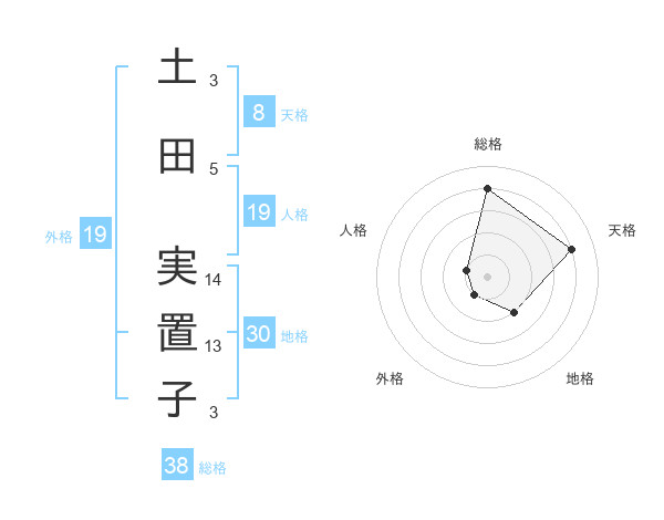 土田 実置子さんの総格は38画の4点!