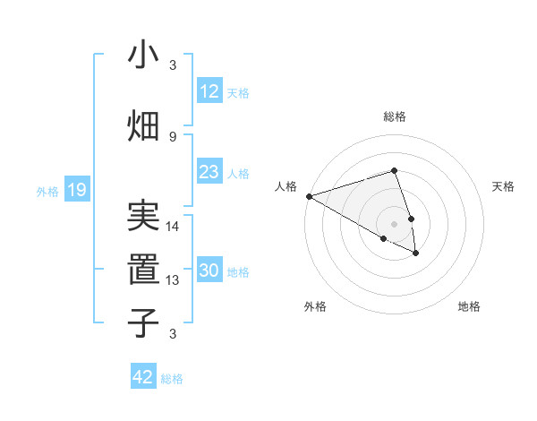 小畑 実置子さんを姓名の画数から五運を鑑定