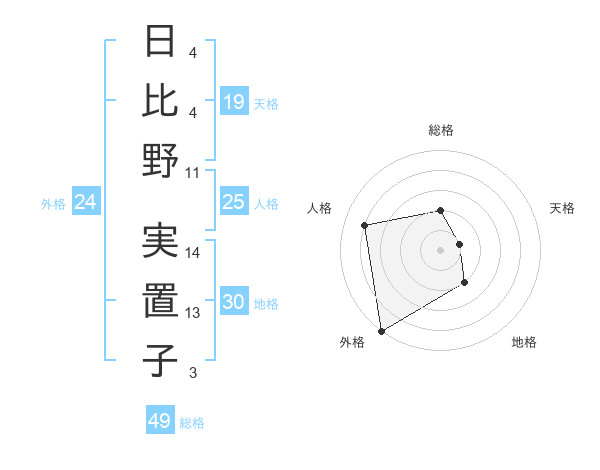 日比野 実置子さんを姓名の画数から五運を鑑定