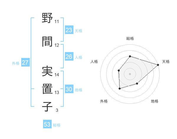 野間 実置子さんの総格は53画の3点!
