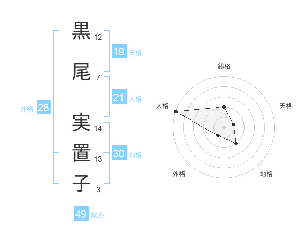 黒尾 実置子さんの総格は49画の2点!