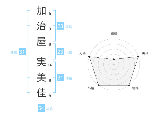 加治屋 実美佳さんを姓名の画数から五運を鑑定