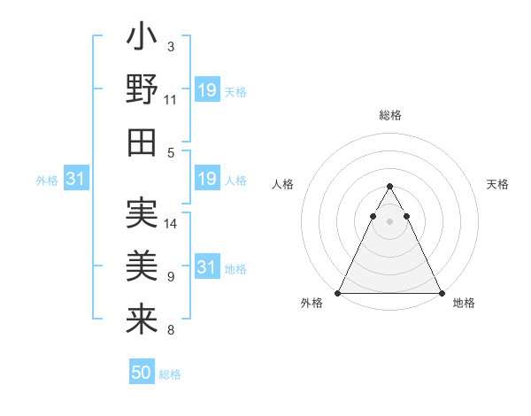 小野田 実美来さんを姓名の画数から五運を鑑定