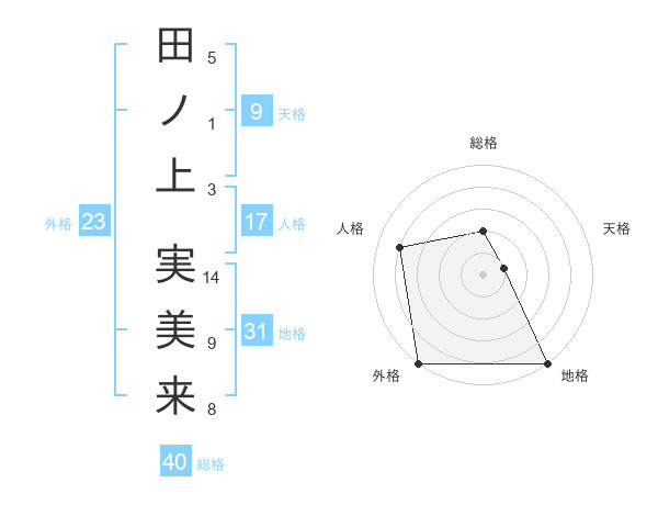 田ノ上 実美来さんを姓名の画数から五運を鑑定