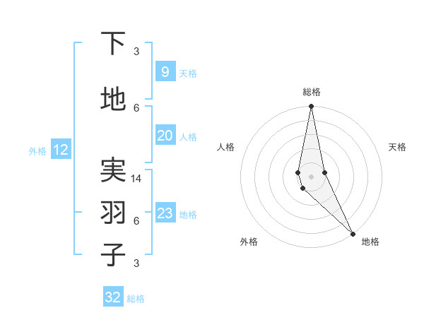 下地 実羽子さんの総格は32画の5点!