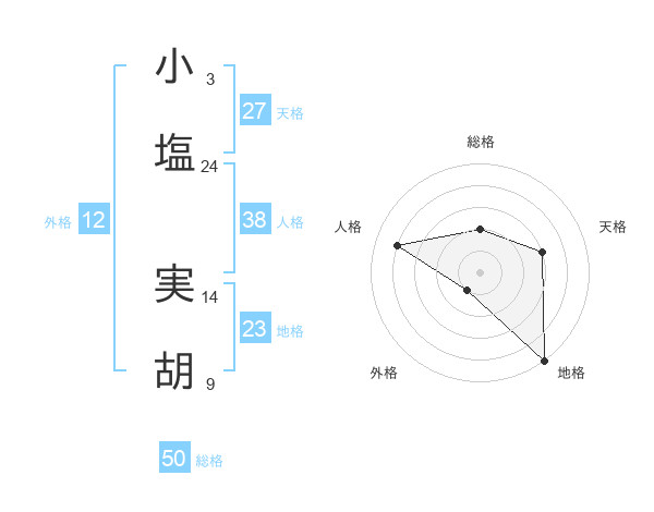 小塩 実胡さんの総格は50画の2点!