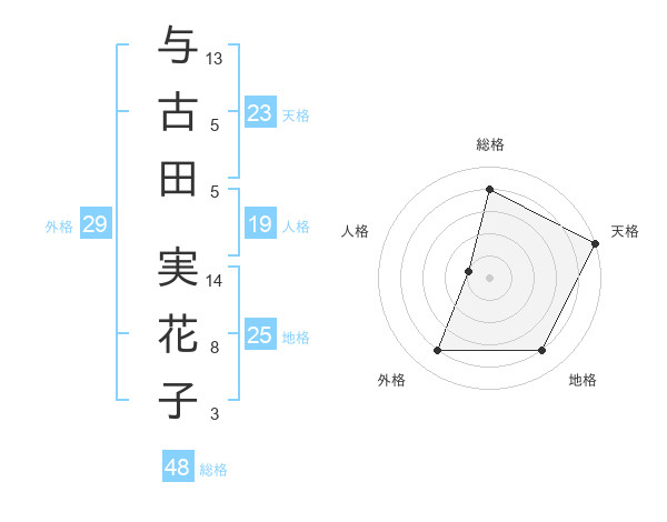 与古田 実花子さんを姓名の画数から五運を鑑定