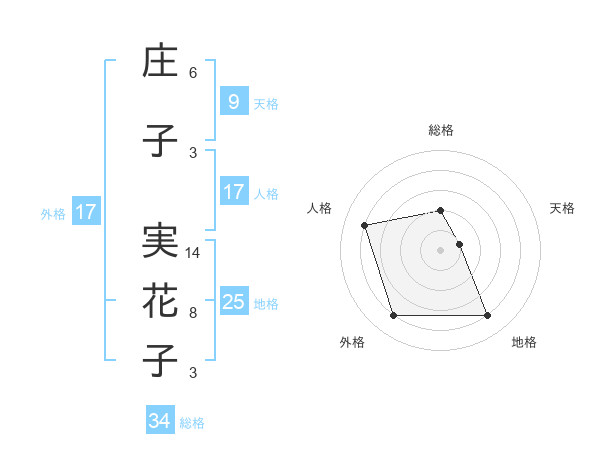 庄子 実花子さんを姓名の画数から五運を鑑定