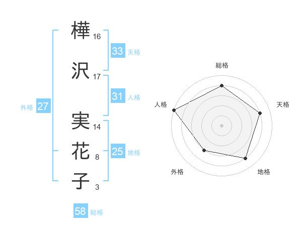 樺沢 実花子さんの総格は58画の4点!