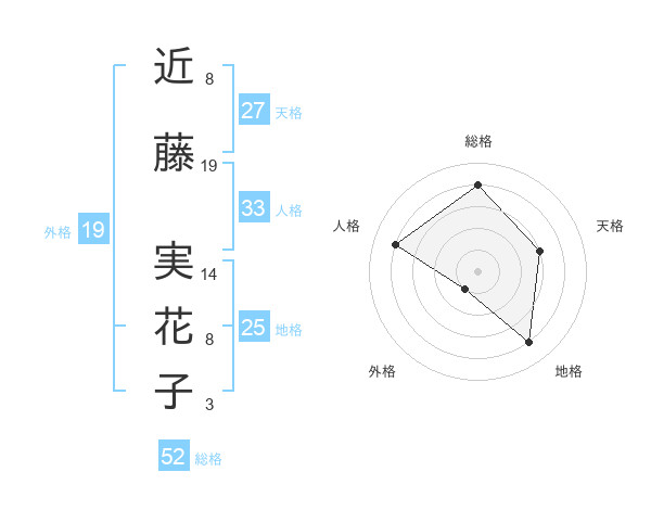 近藤 実花子さんを姓名の画数から五運を鑑定