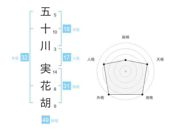 五十川 実花胡さんを姓名の画数から五運を鑑定