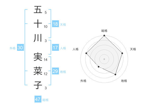 五十川 実菜子さんを姓名の画数から五運を鑑定