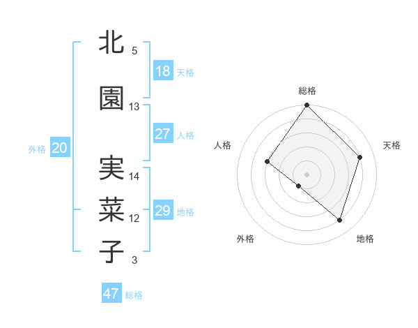 北園 実菜子さんの総格は47画の5点!