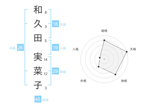 和久田 実菜子さんを姓名の画数から五運を鑑定