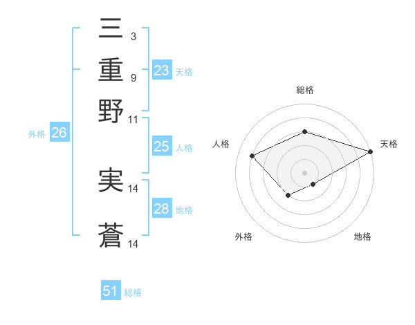 三重野 実蒼さんの総格は51画の3点!