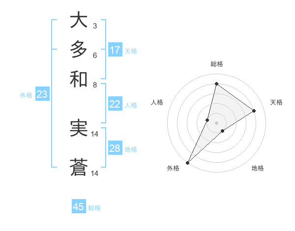 大多和 実蒼さんを姓名の画数から五運を鑑定
