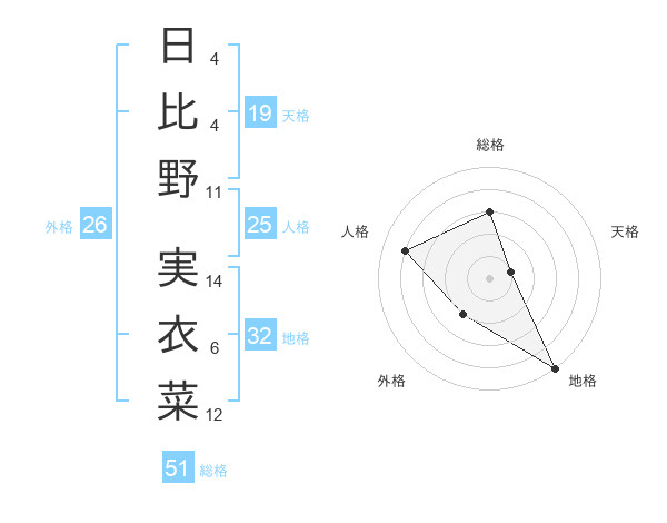 日比野 実衣菜さんを姓名の画数から五運を鑑定