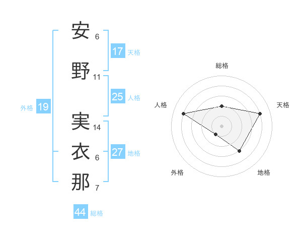 安野 実衣那さんを姓名の画数から五運を鑑定