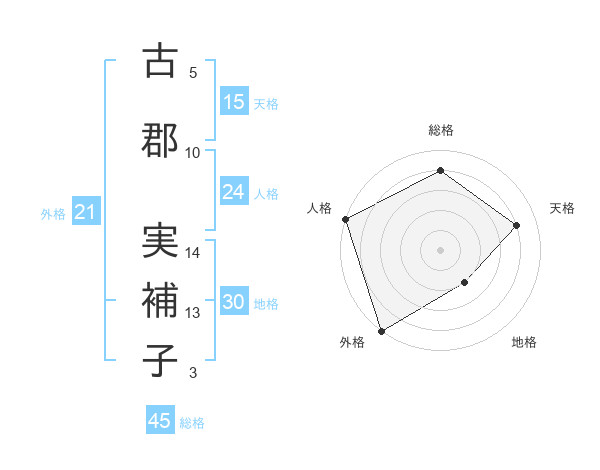 古郡 実補子さんを姓名の画数から五運を鑑定