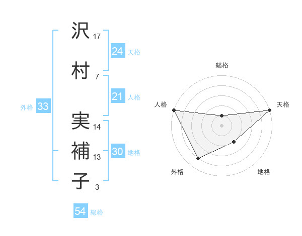 沢村 実補子さんを姓名の画数から五運を鑑定