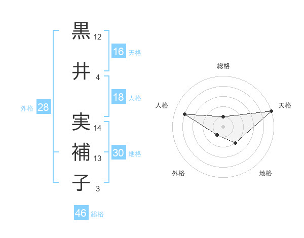 黒井 実補子さんの天格は16画の5点!