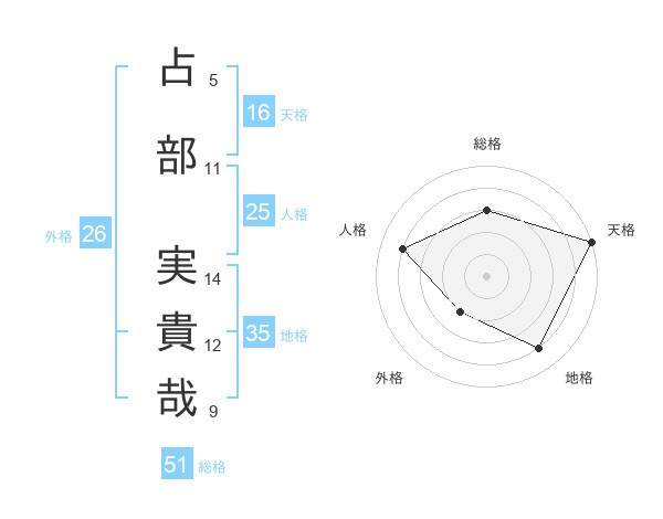 占部 実貴哉さんの総格は51画の3点!