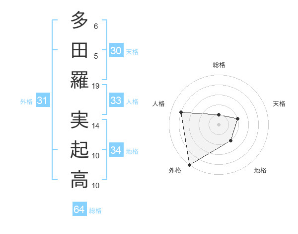 多田羅 実起高さんの外格は31画の5点!