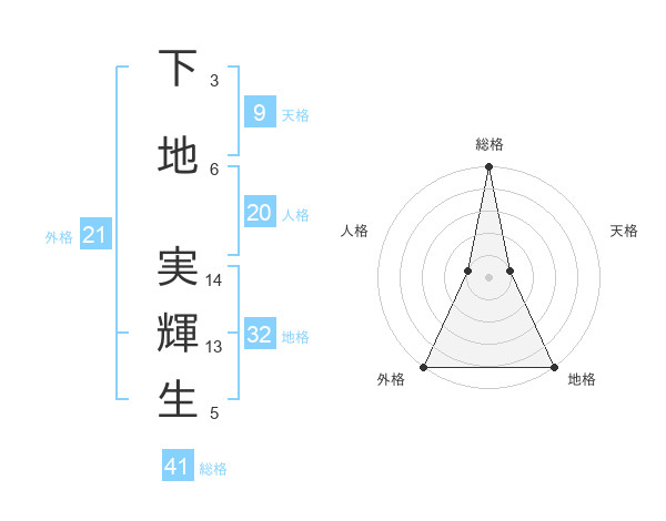 下地 実輝生さんの総格は41画の5点