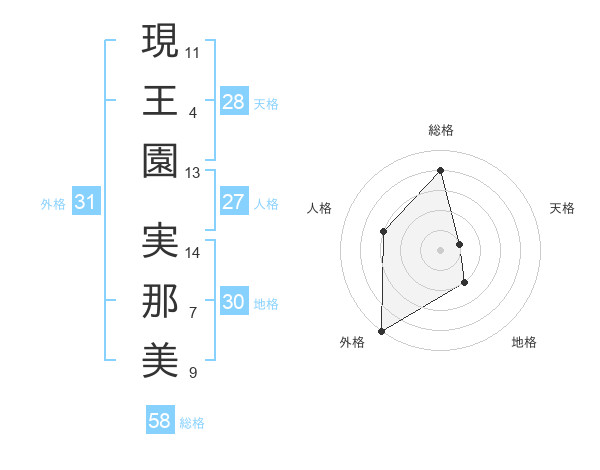 現王園 実那美さんを姓名の画数から五運を鑑定
