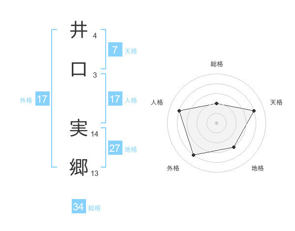 井口 実郷さんの総格は34画の2点!