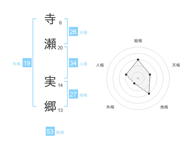 寺瀬 実郷さんの総格は53画の3点!