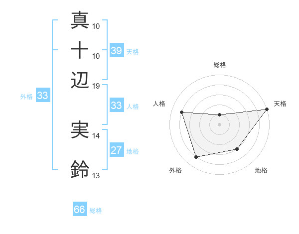 真十辺 実鈴さんの天格は39画の5点!