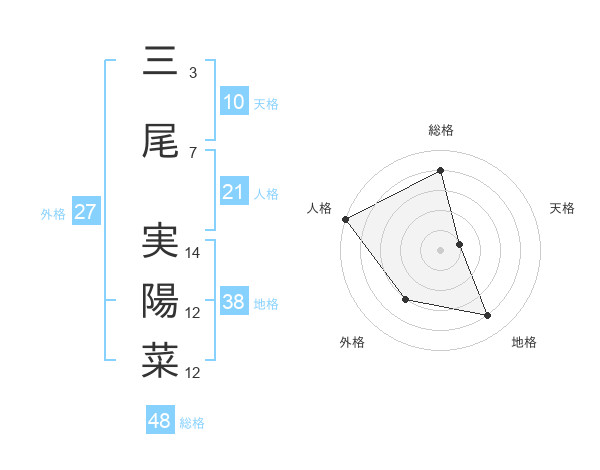 三尾 実陽菜さんの総格は48画の4点!