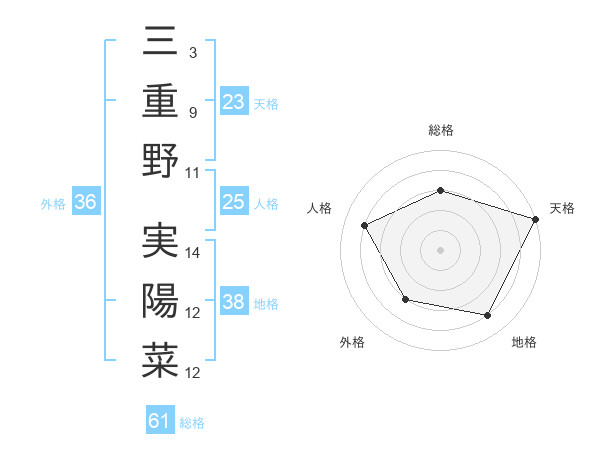 三重野 実陽菜さんを姓名の画数から五運を鑑定