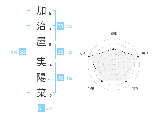 加治屋 実陽菜さんの総格は61画の3点!