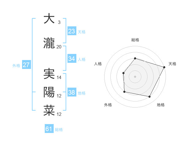 大瀧 実陽菜さんの天格は23画の5点!