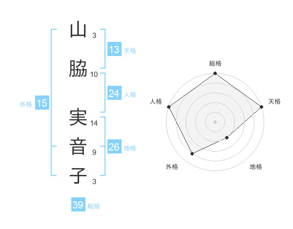 山脇 実音子さんの総格は39画の5点!