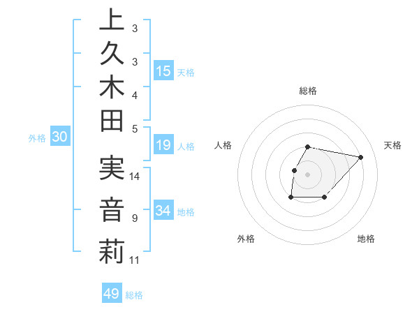 上久木田 実音莉さんを姓名の画数から五運を鑑定