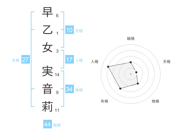 早乙女 実音莉さんを姓名の画数から五運を鑑定