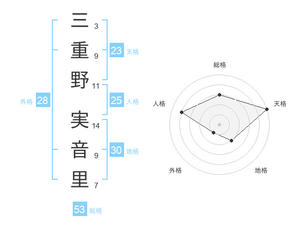 三重野 実音里さんを姓名の画数から五運を鑑定