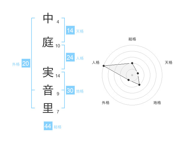 中庭 実音里さんを姓名の画数から五運を鑑定