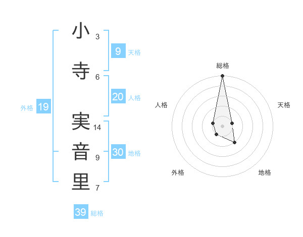 小寺 実音里さんの総格は39画の5点!