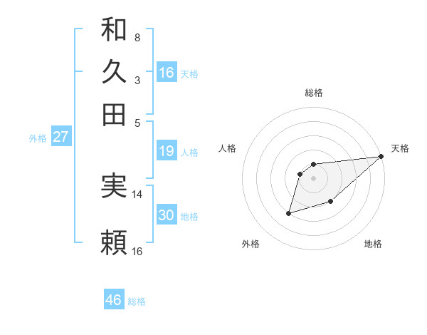 和久田 実頼さんを姓名の画数から五運を鑑定