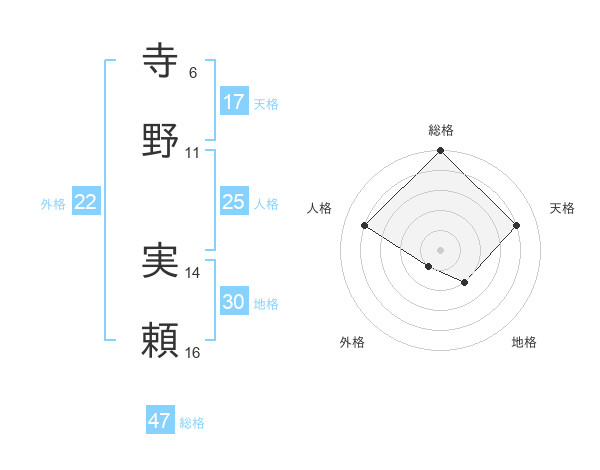 寺野 実頼さんの総格は47画の5点!